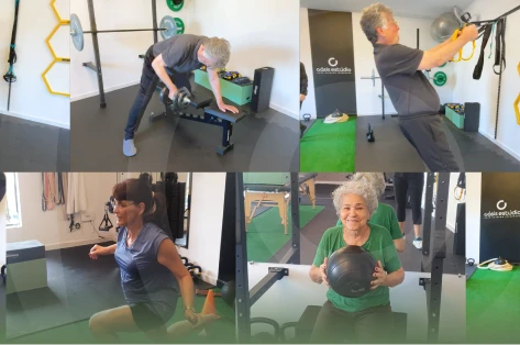 Treinos coletivos em pequeno grupo, com acompanhamento próximo e exercícios que trabalham o corpo de forma completa. Uma mistura equilibrada de musculação, pilates e funcional.